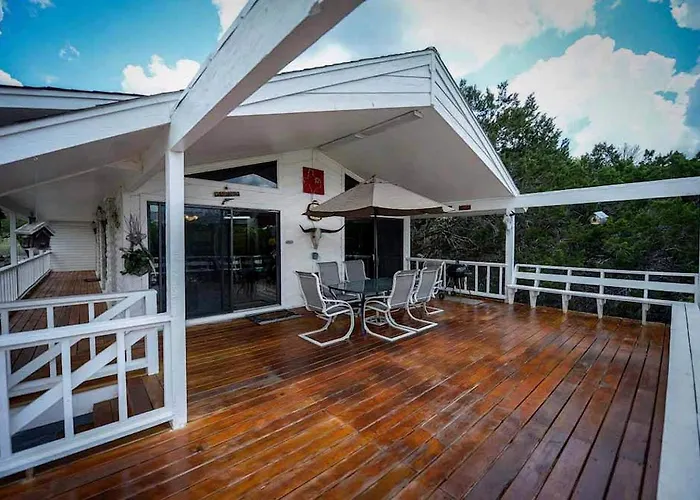 Riverfront Cabin With Spacious Interior, Large Deck And Views In Texas Wimberley